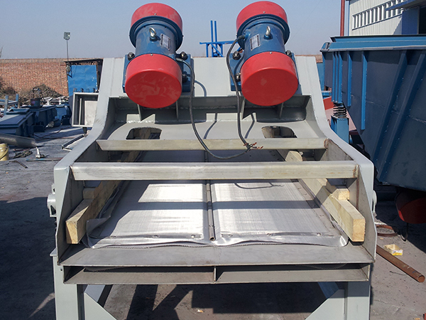 高頻脫水振動篩-煤泥脫水篩-尾礦干排脫水振動篩(高頻脫水振動篩視頻) 脫水篩介紹: 脫水篩,主要作用是脫水、脫泥、脫介,可用于砂石料廠水洗砂、選煤廠煤泥回收、選礦廠尾礦干排等,因此也叫砂石脫水篩、礦用脫水篩、煤泥脫水篩、尾礦干排篩、高頻脫水篩等。 雖然同屬于脫水設(shè)備,但是作用于不同物料時,脫水篩的構(gòu)造還是有所不同的,比如水洗砂生產(chǎn)線上的砂石脫水篩和選礦廠常用的尾礦脫水篩就是不同的設(shè)備。 脫水篩性能優(yōu)勢: 1、脫水篩的振動電機(jī),更換方便,底座橡膠彈簧用來減震,使振幅不大,緩慢的振動