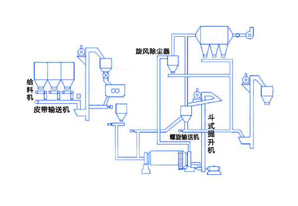 石膏粉生產(chǎn)線主要加工流程為:石膏礦石—振動(dòng)給料機(jī)-破碎機(jī)-斗式提升機(jī)-原料倉(cāng)-斗式提升機(jī)-沸騰爐(配除塵器)-斗式提升機(jī)-輸送機(jī)-儲(chǔ)存輸送-成品。其中對(duì)石膏礦石的輸送提升是整個(gè)石膏粉生產(chǎn)線重要的環(huán)節(jié)。