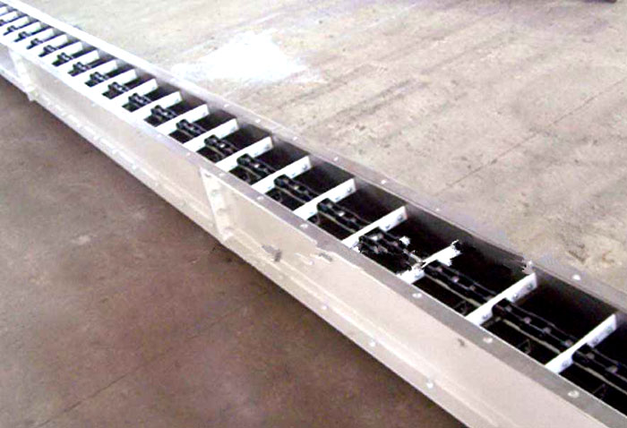 刮板輸送機(jī)簡稱刮板機(jī),是常用的輸送機(jī)械之一,用刮板鏈牽引,在槽內(nèi)運送散料,穩(wěn)定耐用,刮板機(jī)可用于水平運輸,亦可用于傾斜運輸。
