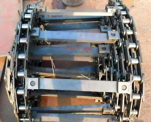 | 刮板鏈條運行時嘈聲過大。 | 1. 有硬物料落入機(jī)槽 2. 某節(jié)鏈條松動或不靈活。 | 1. 清除雜物。 2. 更換鏈節(jié) |