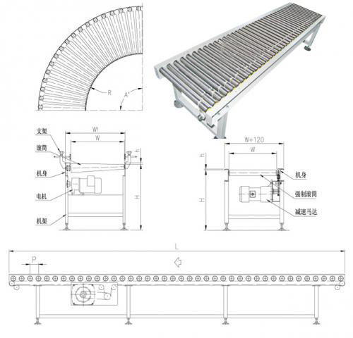 水平直線輸送、提升爬坡輸送等形式,輸送帶可增設(shè)提升擋板、側(cè)擋板。