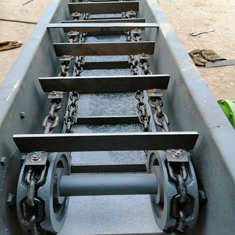埋刮板輸送機是借助于在封閉的殼體內(nèi)運動著的刮板鏈條而使散體物料按預(yù)定目標輸送的運輸設(shè)備。它具有體積小、密封性強、剛性好、工藝布置靈活、安裝維修方便、并能多點加料和多點卸料等優(yōu)點。因此顯著改善了工人的勞動條件,防止了環(huán)境污染。埋刮板輸送機原理是依賴于物料所具有的內(nèi)摩擦力和殼體給物料的側(cè)壓力,在輸送物料過程中,刮板鏈條運動方向的壓力以及在不斷給料時下部物料對上部物料的推移力,這些作用力的合成足以克服物料在機槽中被輸送時與殼體之間產(chǎn)生的外摩擦阻力和物料自身的重量。使物料無論在水平輸送、傾斜輸送和垂直輸送時都能形成連續(xù)的料流向前移動。