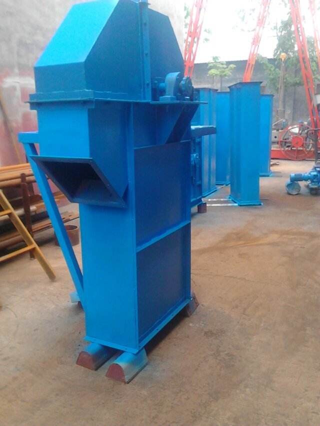 雙斗提升機包括機架、料斗、上軌道、下軌道和鏈條,上軌道與下軌道固定在機架上,鏈條安裝在機架上,料斗上設置有上行走輪與下行走輪,上行走輪置于上軌道內,下行走輪置于下軌道內,上行走輪與鏈條連接,其特征在于,在上軌道上靠近地面的一端設置有橫向移動軌道。動作簡單,運行穩(wěn)定性高,生產成本和運行成本低。