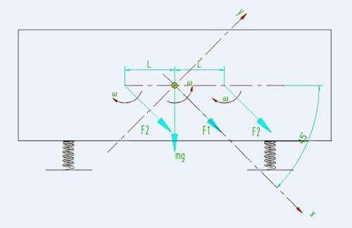 橢圓振動篩電動機通過傳動帶驅(qū)動齒輪箱式同步器使三軸強迫同步,其中中間軸與兩側(cè)軸轉(zhuǎn)向相反,相應(yīng)帶動三組塊偏心式振動器篩箱的座式安裝振動篩。篩箱運動軌跡為橢圓形,電動機可左裝或右裝 。